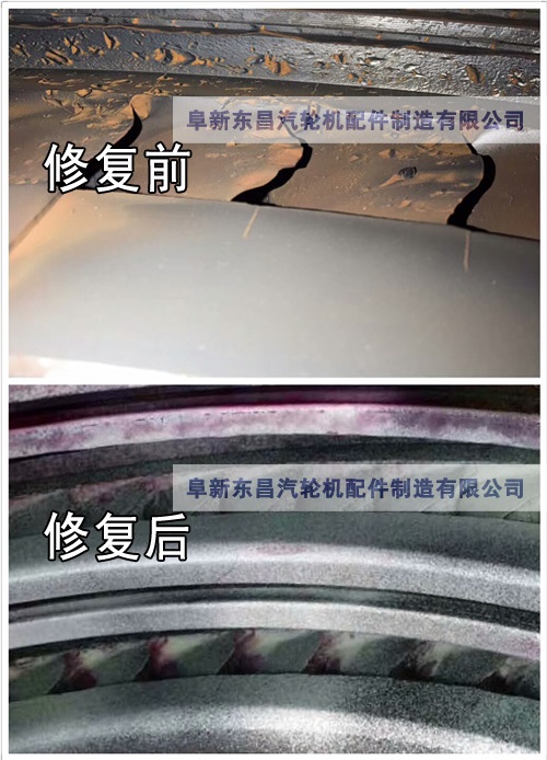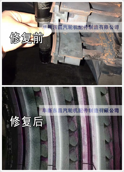 阜新東昌汽輪機配件制造有限公司高壓隔板噴嘴、靜葉片,修復前和修復后的對比圖。