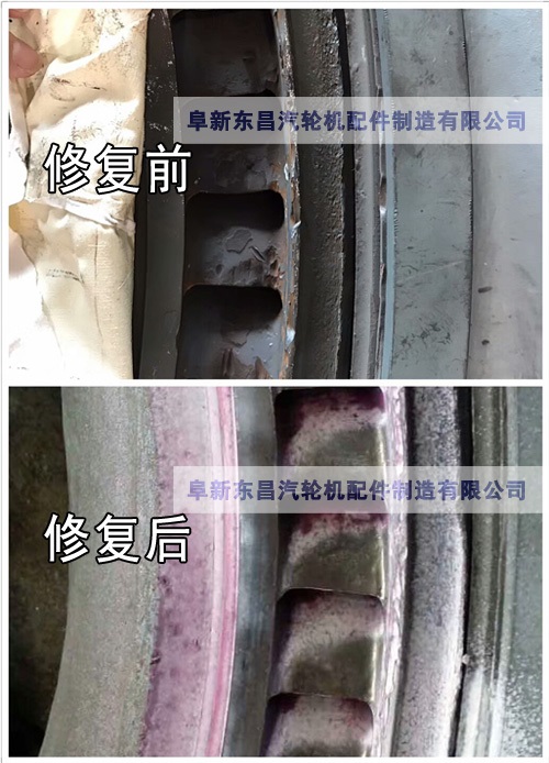 靜葉片修復前和修復后的對比